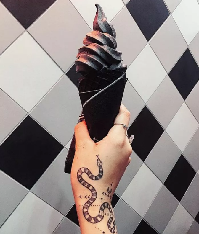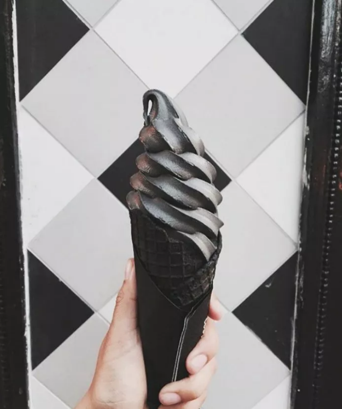 这款冰淇淋一经推出,引起了大家的好奇心,大家都被这纯黑色的冰淇淋的样子吸引到了。