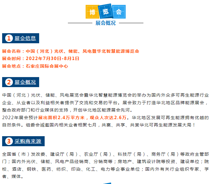 关键词:2022年河北/华北光伏展会;2022年河北/华北光伏发电展会;2022年河北/华北分布式光伏展会;2022年河北/华北整县光伏展会;2022年河北/华北建筑光伏一体化展会;2022年河北/华北太阳能发电展会;2022年河北/华北太阳能技术应用展