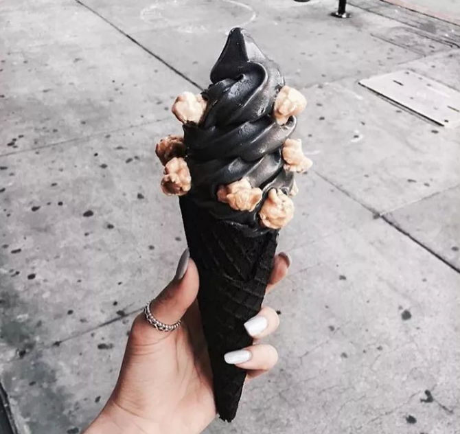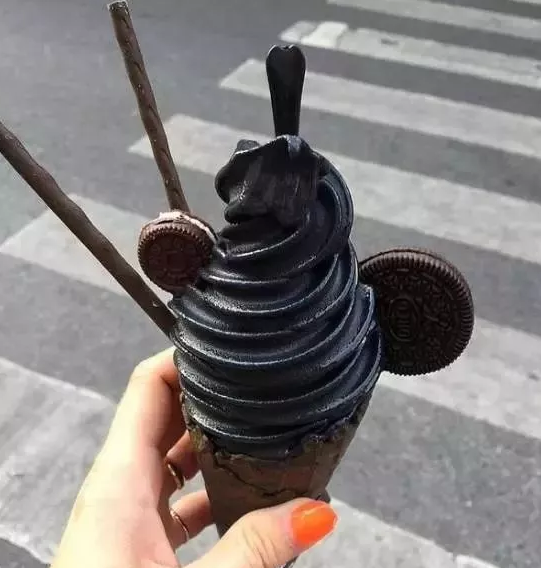 这款冰淇淋一经推出,引起了大家的好奇心,大家都被这纯黑色的冰淇淋的样子吸引到了。